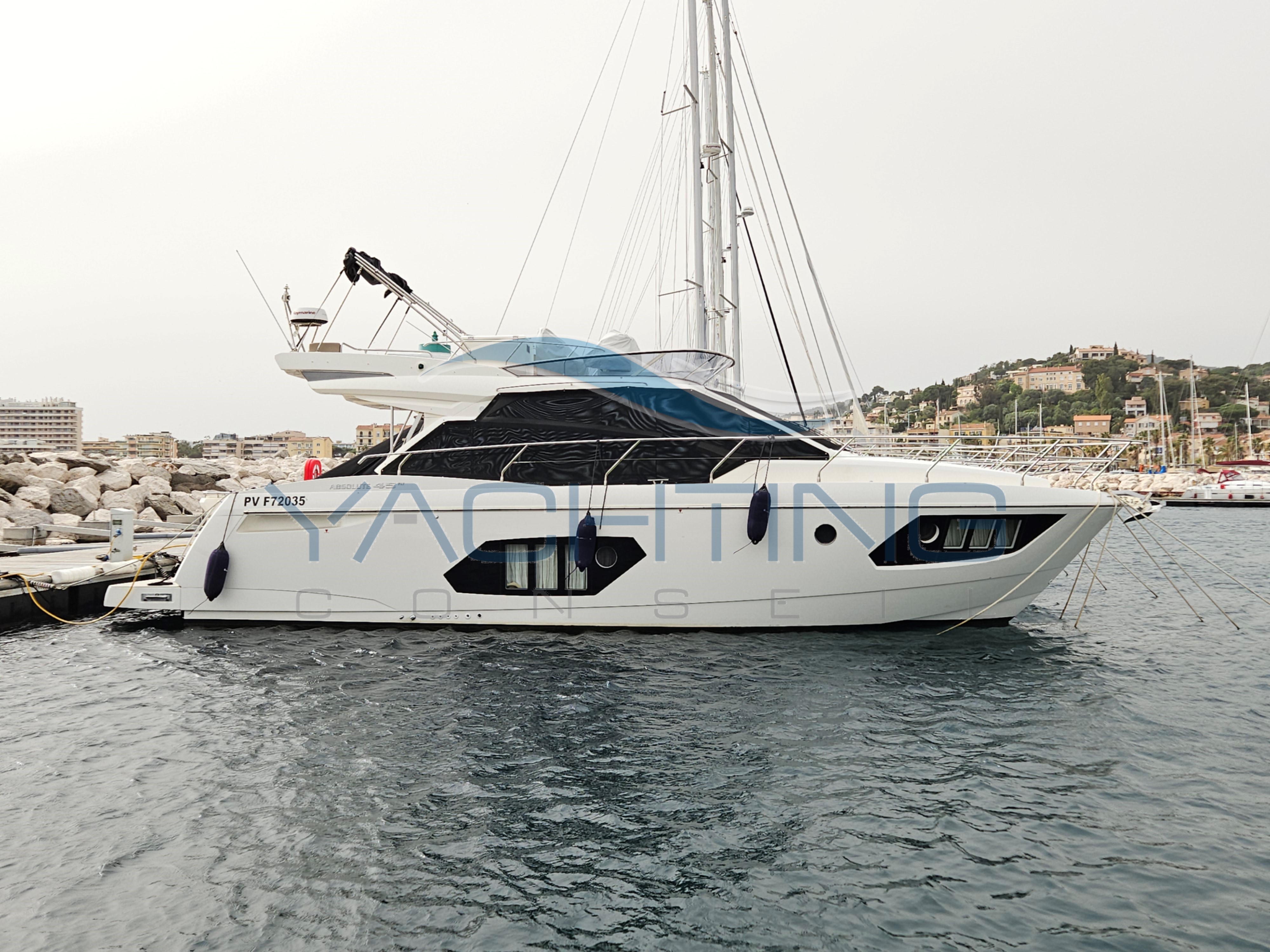 Cet Absolute 45 FLY de 2018, en version full options, a bénéficié d’un entretien extrêmement rigoureux réalisé par des professionnels, garantissant une navigation en toute sérénité.Possibilité de reprise partielle du leasing avec une TVA à taux réduit sous conditions