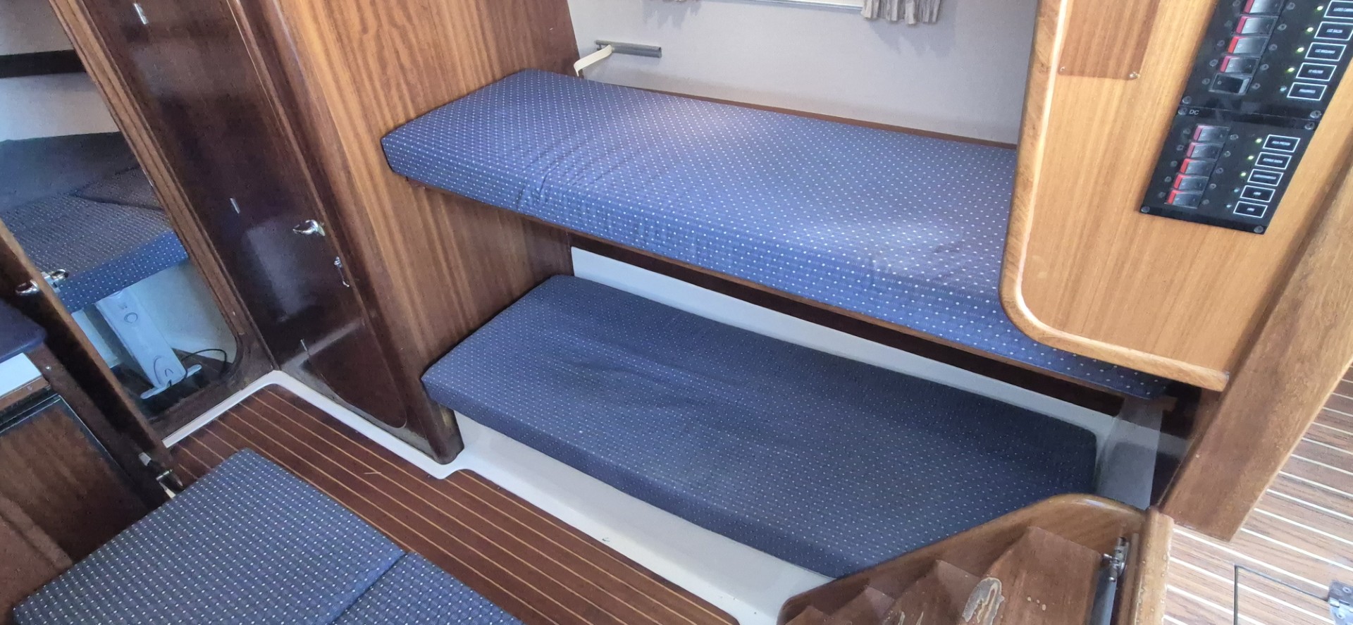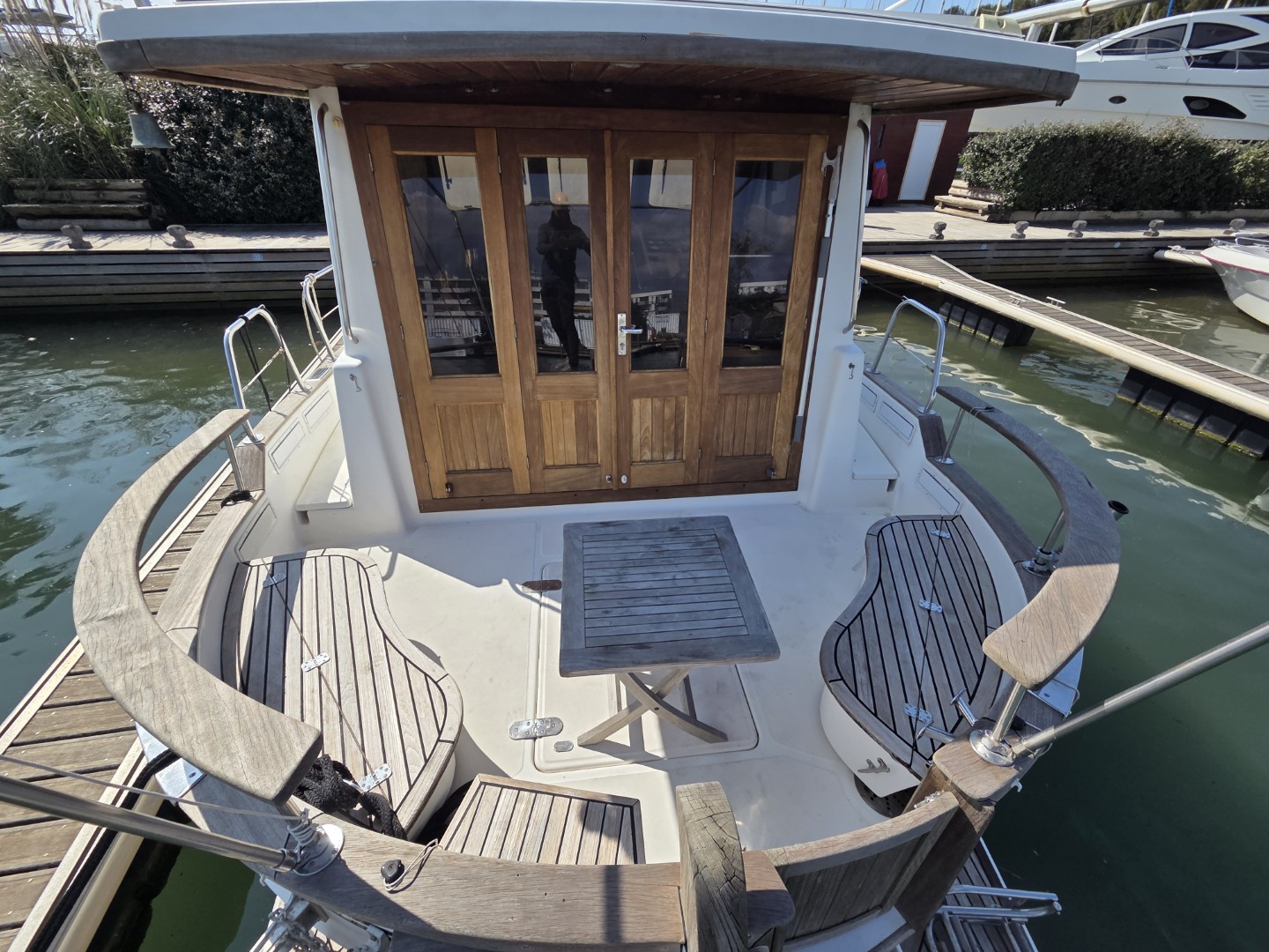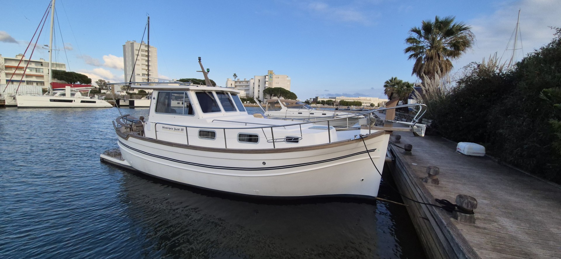Bateau très bien équipé pour la croisière, incluant une passerelle hydraulique, prêt à naviguer immédiatement.